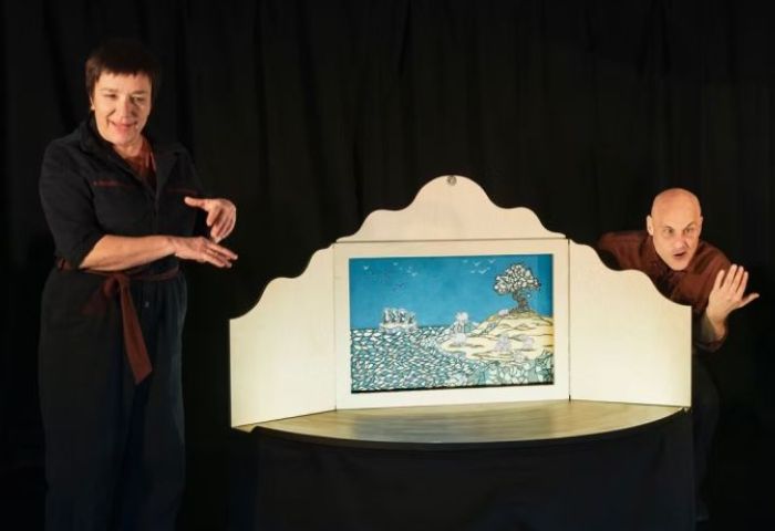 TERRE ! raconte l’histoire d’une bande de manchots qui se retrouvent soudainement à errer sur l’océan, accrochés à leur bloc de glace qui n’a rien trouvé de mieux que de se détacher du continent blanc. Voilà qui est contrariant ! Mais comme ils aiment à se répéter « il n’y a pas de problème sans solution » il est donc évident qu’ils vont bientôt pouvoir poser pattes sur une nouvelle terre accueillante. Après tout, ça ne manque pas... Un conte plein d’humour et de chansons qui nous propose de réfléchir ensemble sur le thème de l’accueil.
